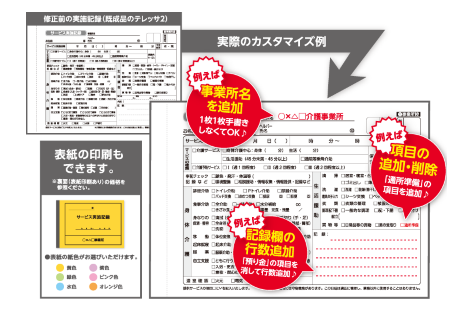 「もっと使いやすいヘルパー日誌はないかな」「事業所独自のオリジナルの内容で印刷して欲しい」