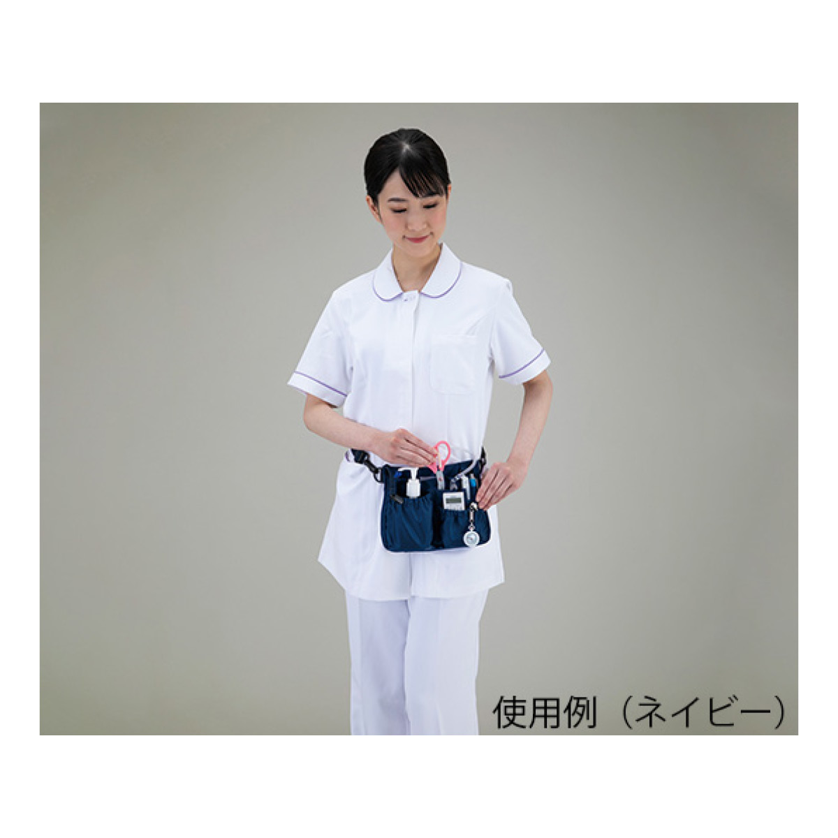 大ポケット(幅220×深さ150mm)は、装着時にポケットの口が広がらないよう面ファスナーが付いています。ペン挿し2本分付き。