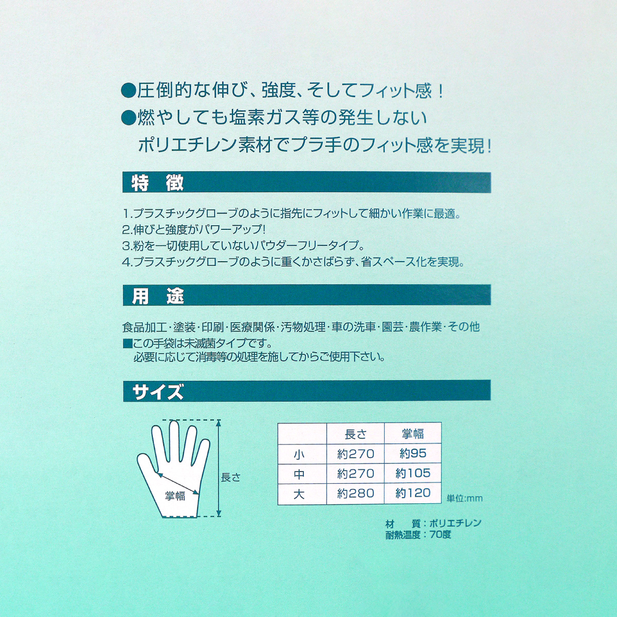 圧倒的な伸び、強度でプラスチック手袋のようなフィット感です。