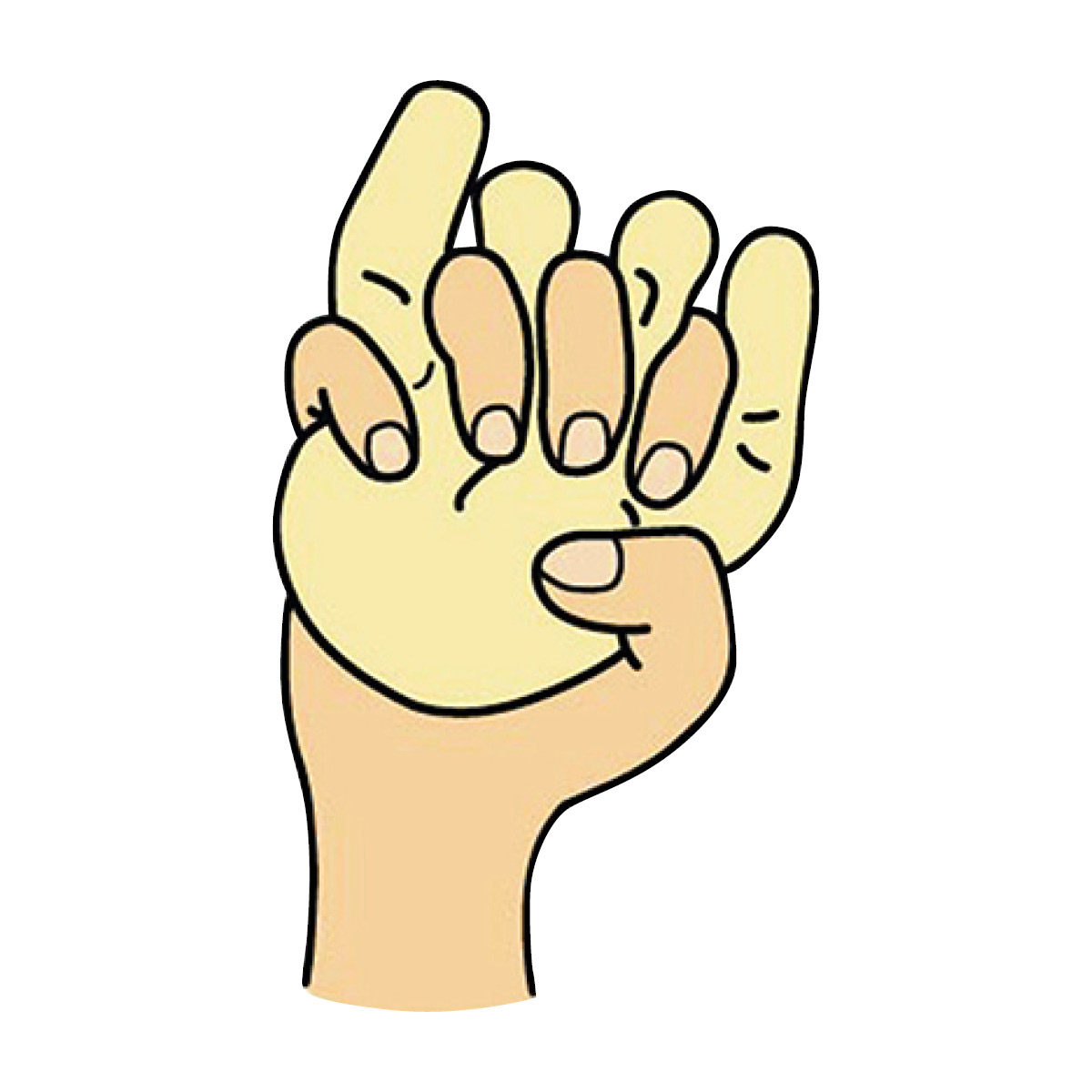 手のひらを爪による傷つけからも保護し、手を開いても落ちないユニークなカタチです。