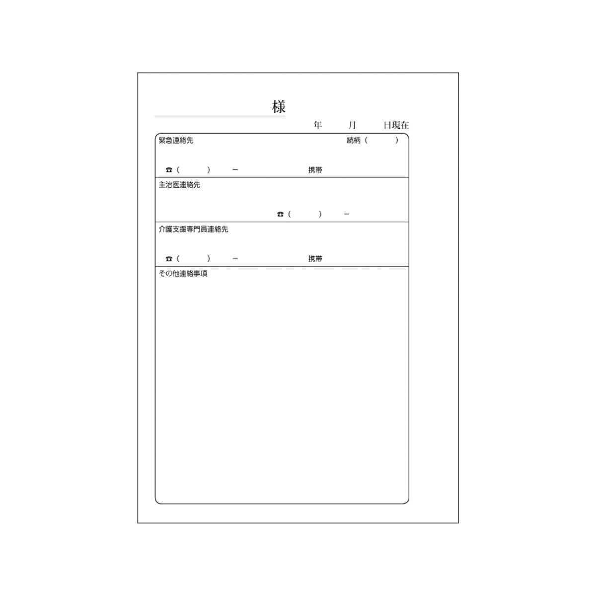 通所介護用のノート式デイ日誌の簡易版。