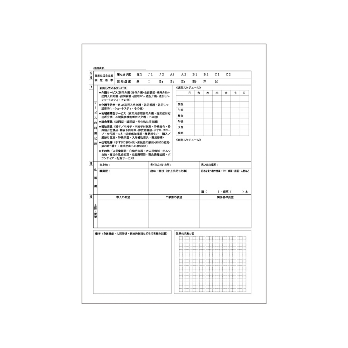 平成11年老企第29号別紙(4)に示す23項目の標準分析項目に基づくアセスメント方式で基本情報について記入します。