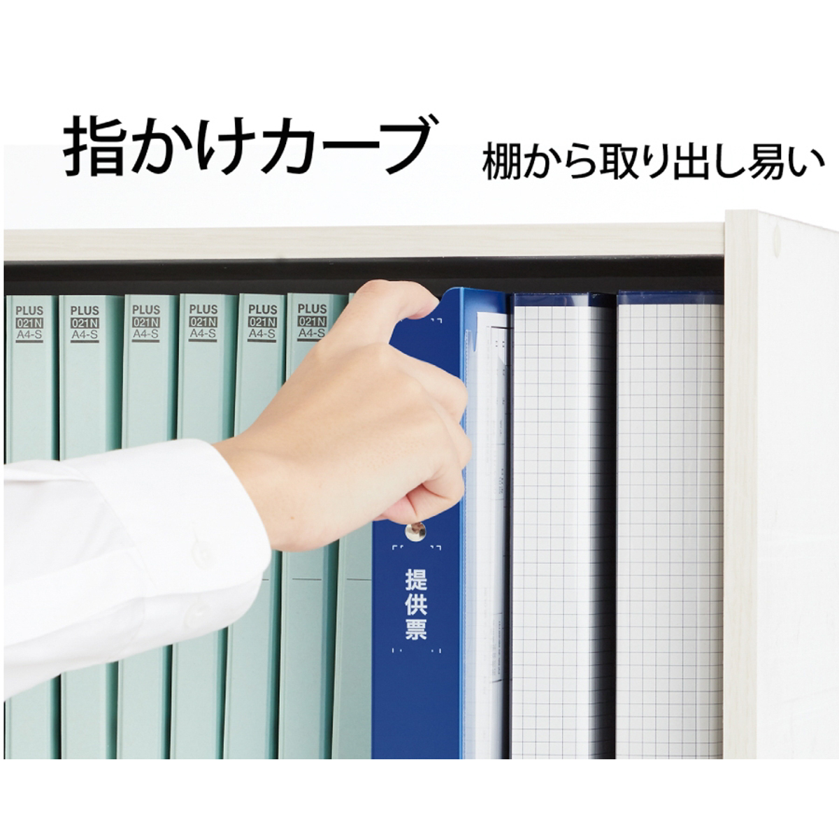背の部分は指かけカーブがついており、棚から取り出しやすく工夫しています。