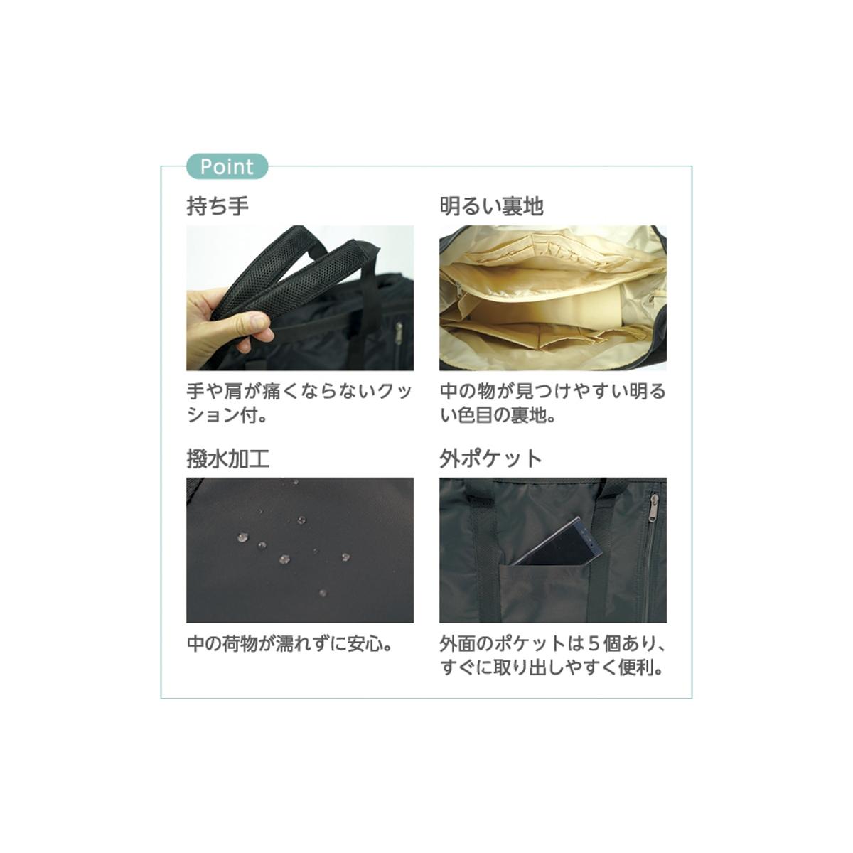 斜め掛け、肩掛けもできる、軽くて大容量の訪問バッグ。