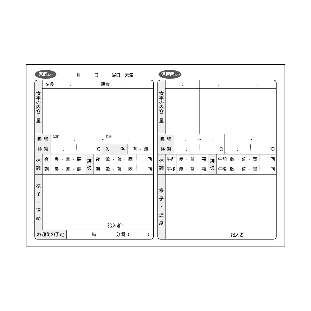 ノート式 保育園れんらくちょう