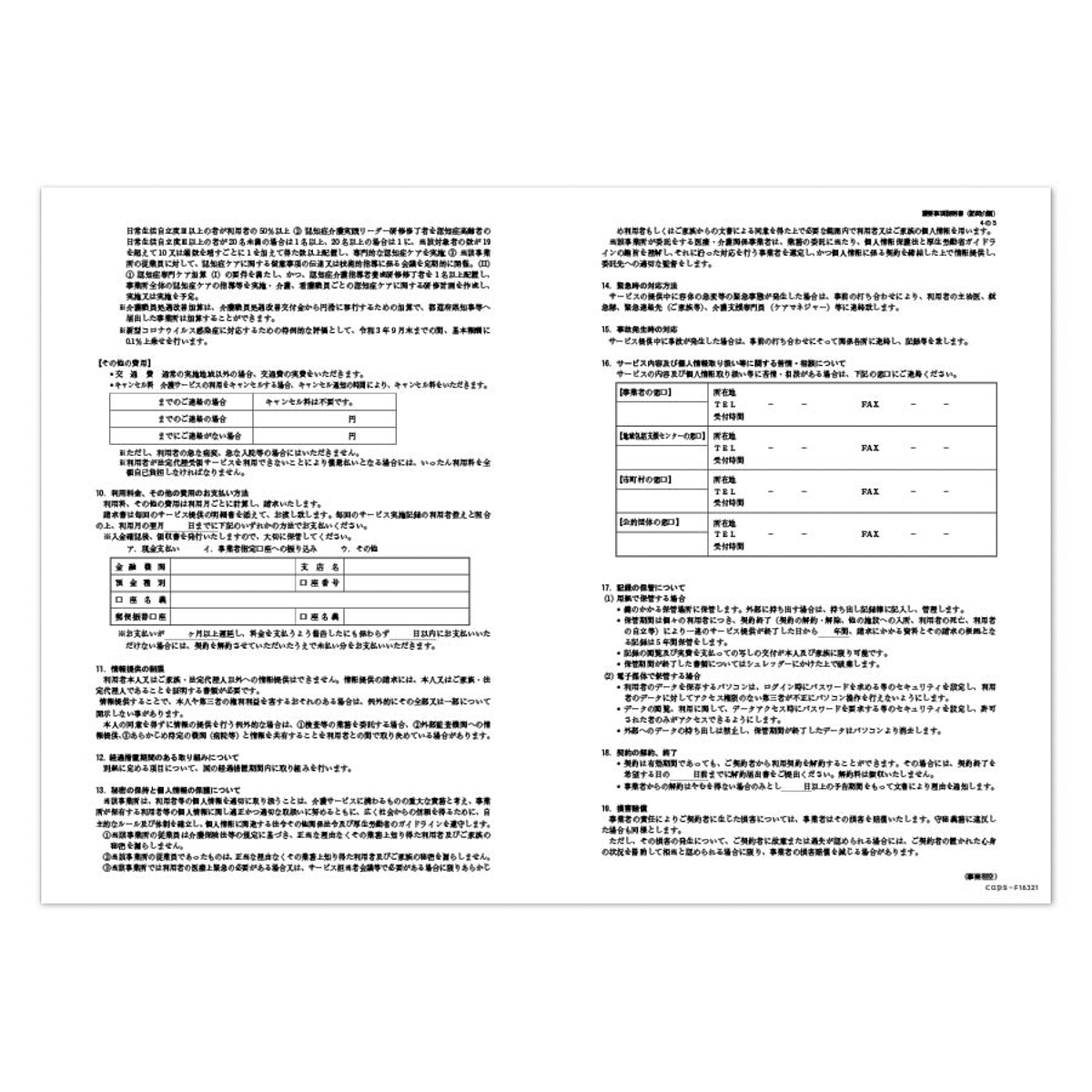 A3、4枚の充実した重要事項説明書です。訪問介護用です。
