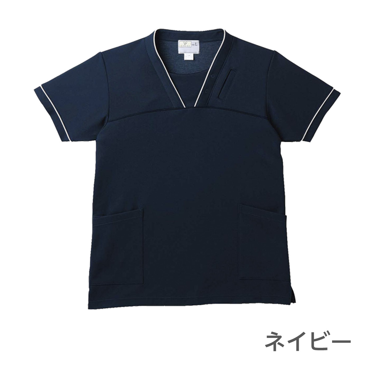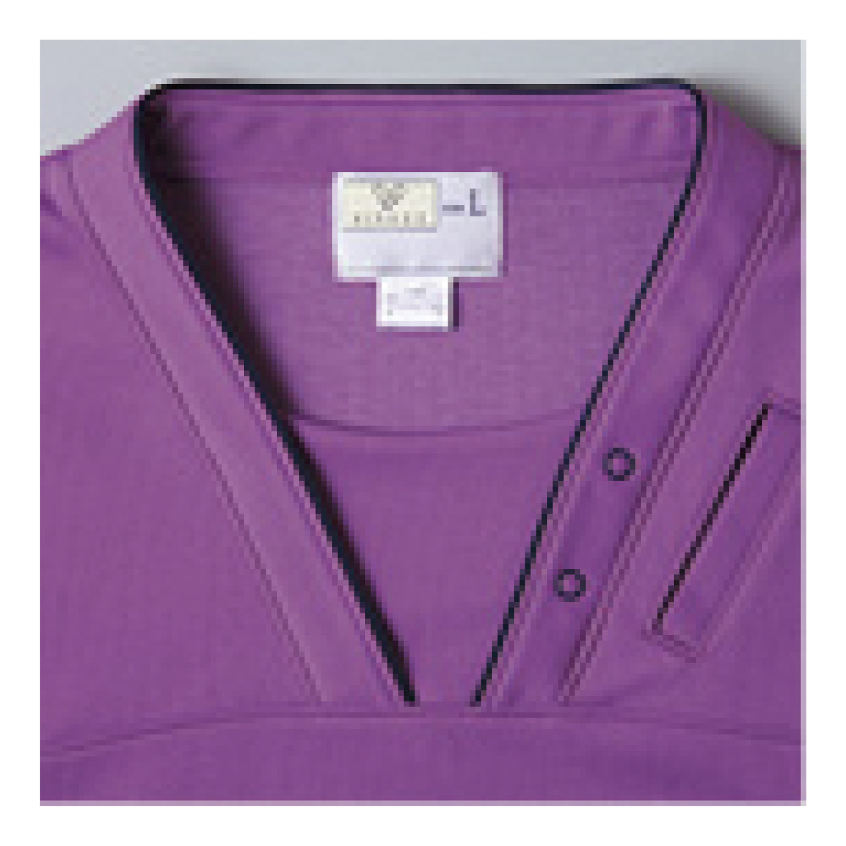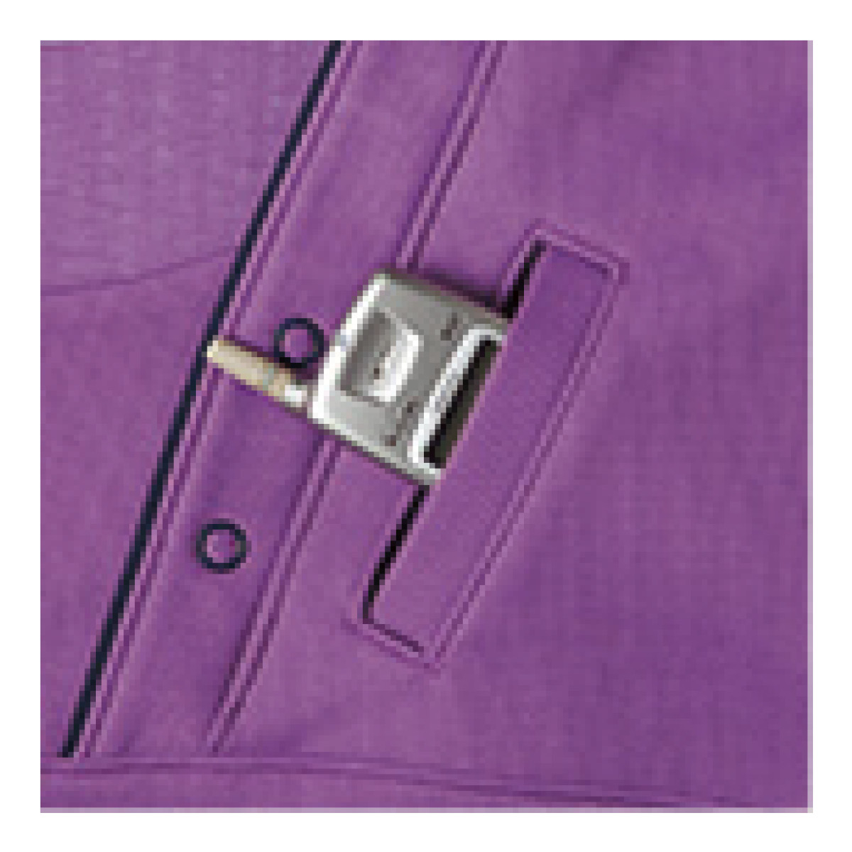 仕切りのついた大きめポケット、PHSポケットのついた、ビビッドカラーのケアスクラブです。 ■ポリエステル95%/綿5%【リップル防縮ニット】