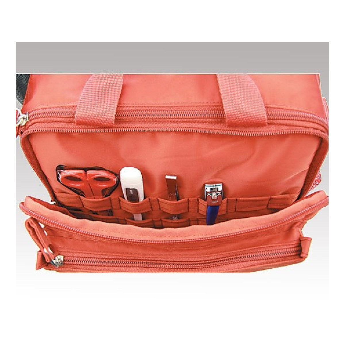 口が大きく開くので中身が取り出しやすく、内ポケットは仕分けに便利な仕切り付。