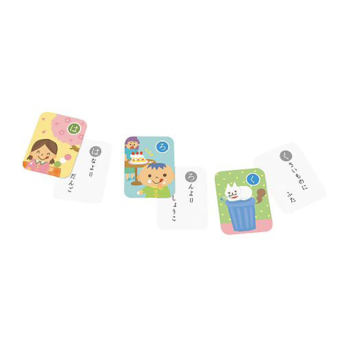 かわいいイラストでことわざや慣用句が視覚的に理解しやすく、学びながら遊べるかるたです。