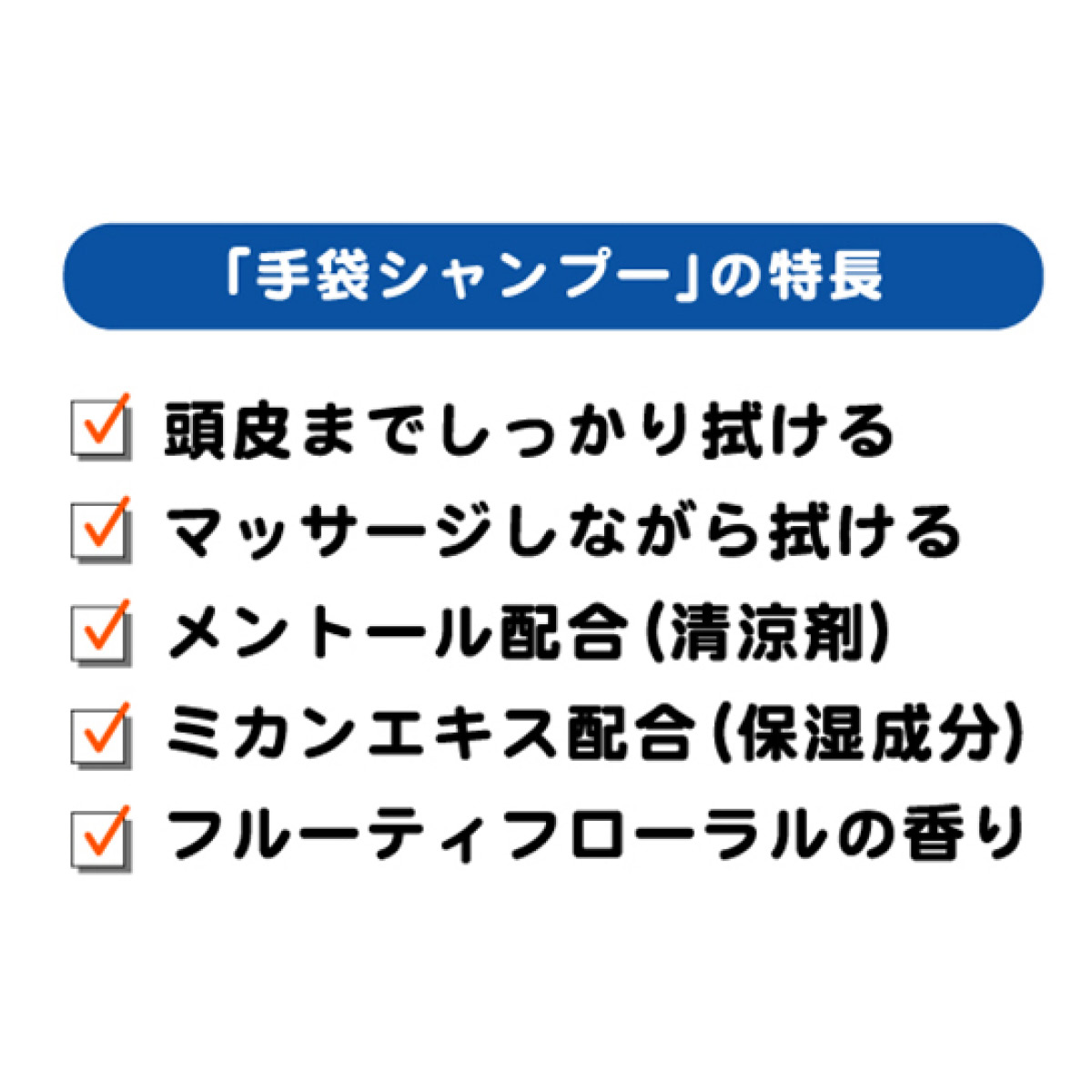 水を使わず、拭くだけカンタン、手袋型なので細かい所もしっかり拭き取ることができます。