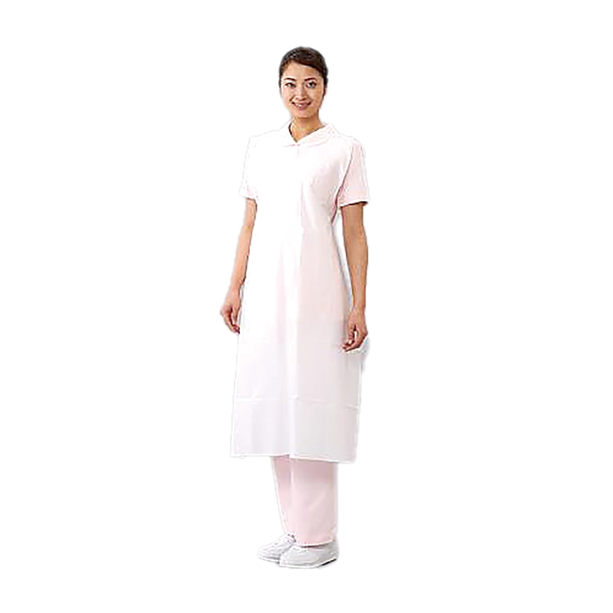 長さ・襟元調節可能で、ネック後方部と腰脇にはミシン目があるので前に引っ張るだけで容易に脱ぐことができます。