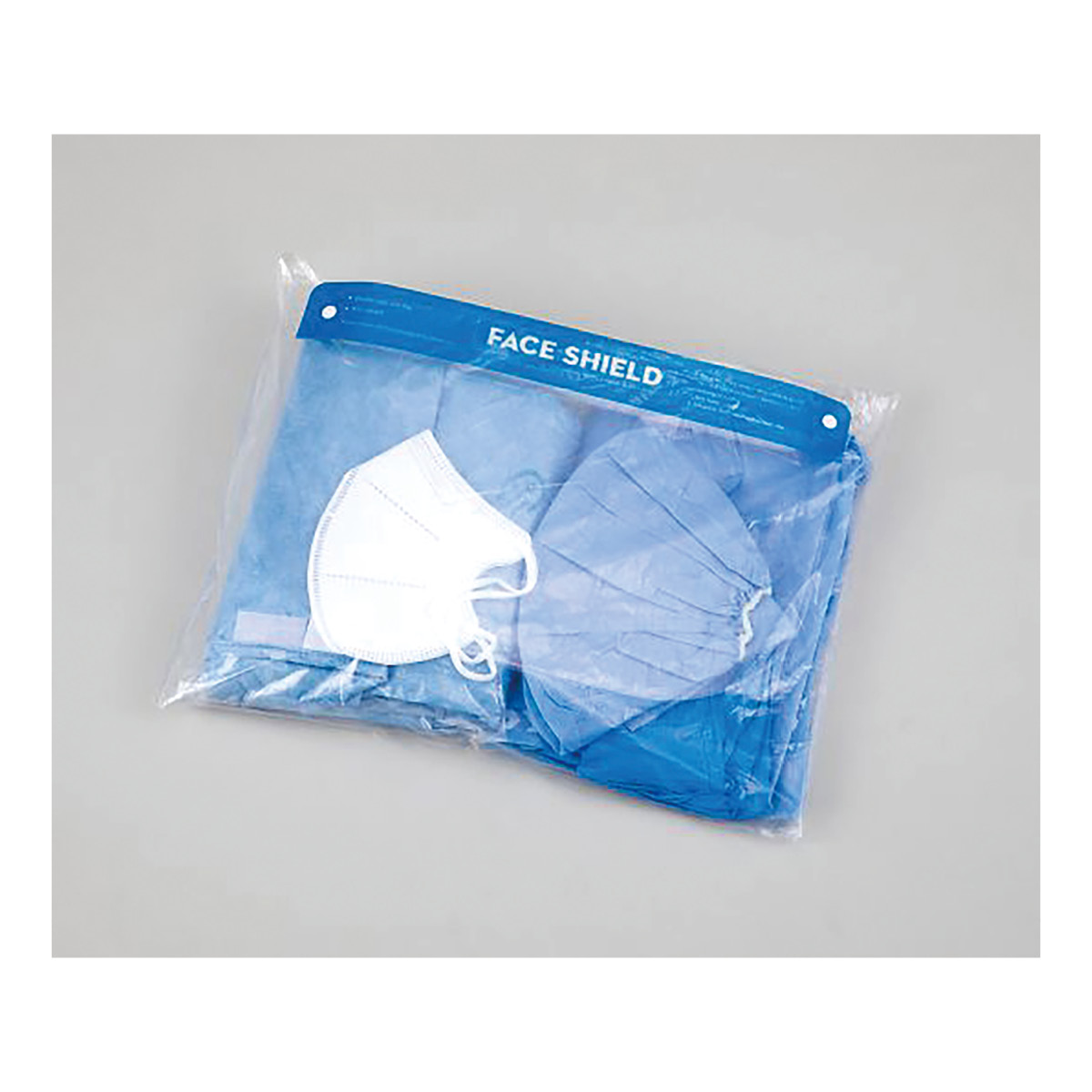 【セット内容】ガウン×1枚、キャップ×1枚、ブーツカバー×1足、手袋×4枚、フェイスシールド×1個、KN95マスク×1個