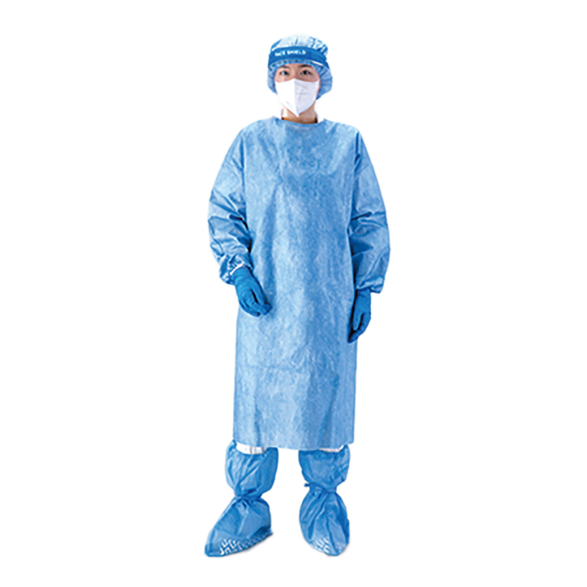 ガウン・キャップ・ブーツカバーは、バリア製の高い3層構造SFS生地を使用しています。