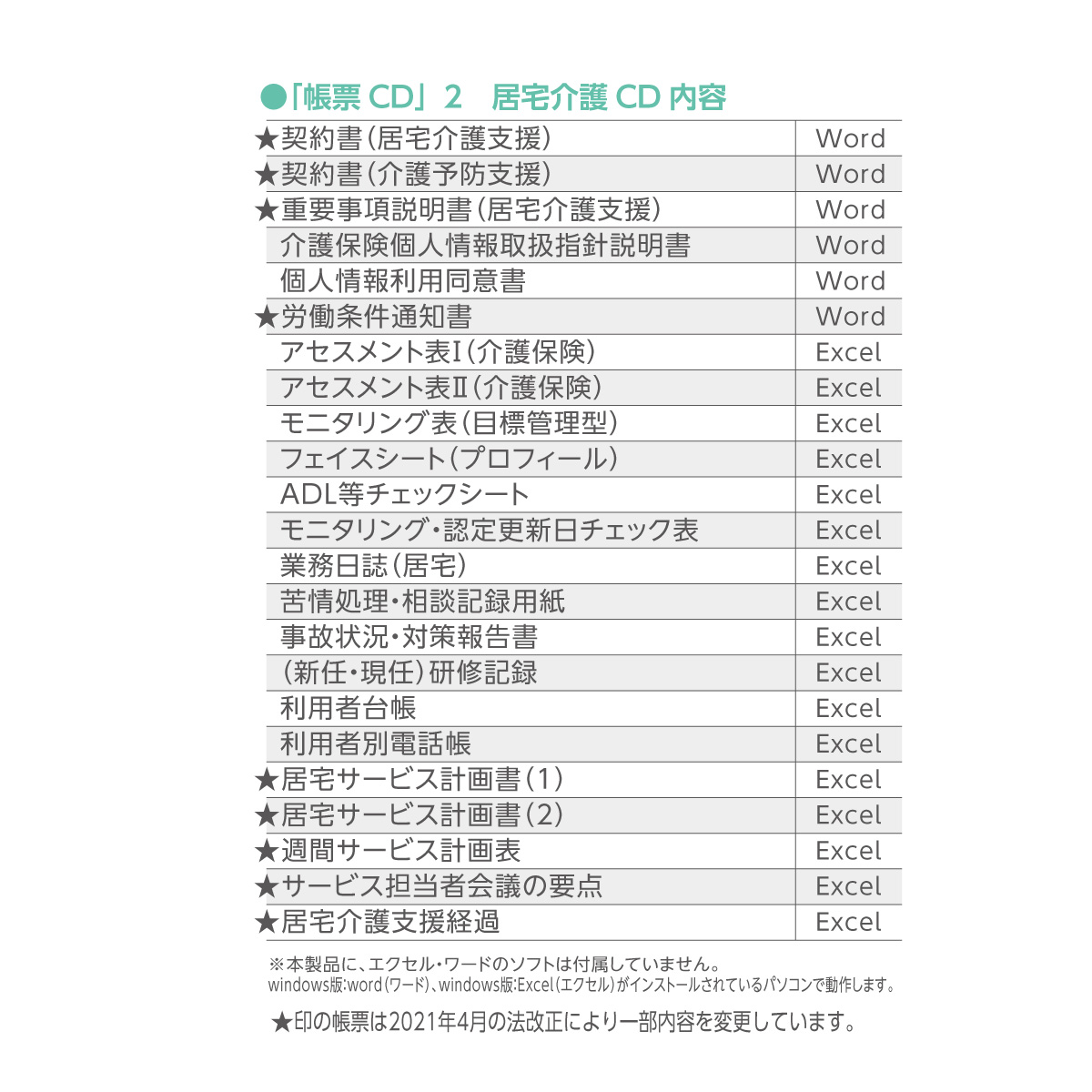 居宅介護支援の主要帳票をデータ化いたしました。 契約書/重要事項説明書/介護保険個人情報取扱指針説明書/同意書/苦情処理/アセスメント/モニタリング/ADL等チェックシート/支援経過表/業務日誌など全19種類。
