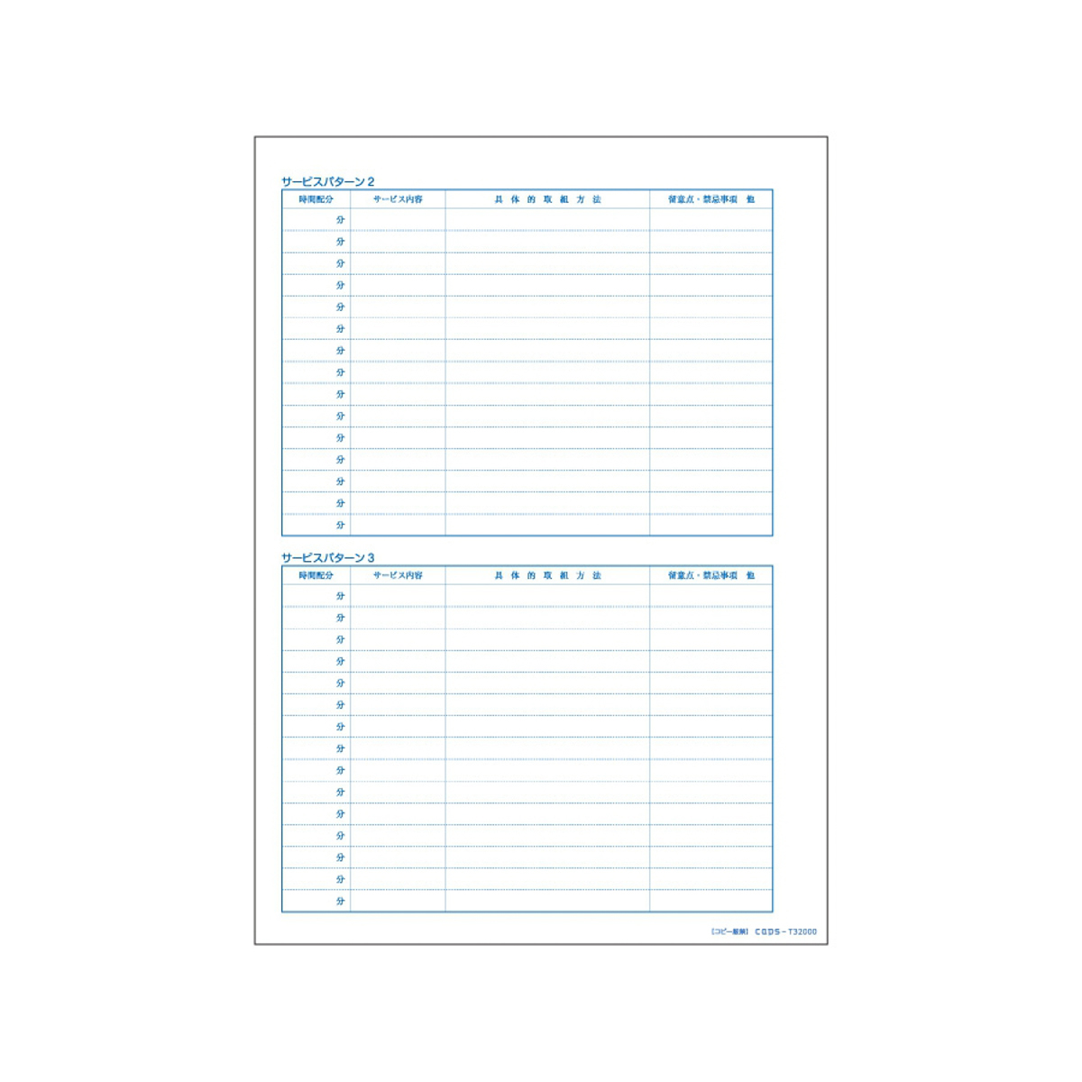 A4両面で3パターンの手順が記入できますので曜日や時間によってそれぞれご記入ください。
