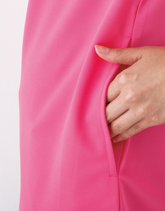 左胸にはアウトポケット、両脇にはスラッシュポケットを目立たないように配置しています。衿と袖口のラインもポイント!