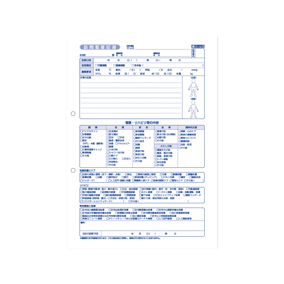 訪問リハにも使用できます。 人型の絵柄入りで記入しやすい、利用者控え、ステーション控えの2枚複写仕様、A4版。