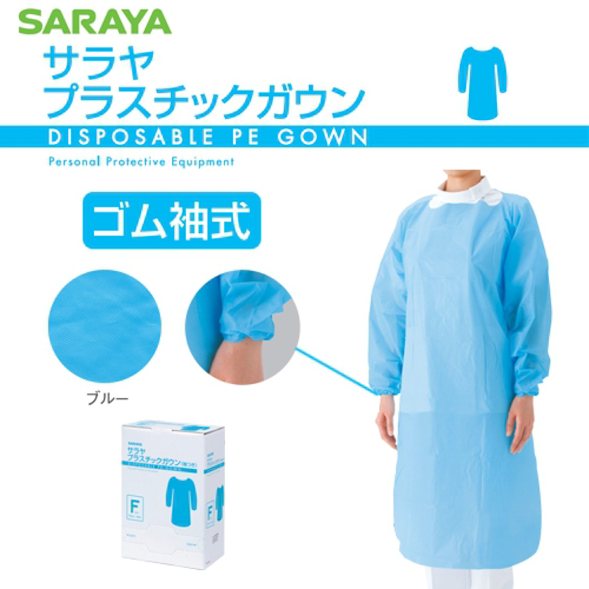 防水性の高いポリエチレン製で、血液、体液等の湿性生体物質を通さず、医療従事者と患者の双方における感染リスクを低減します。