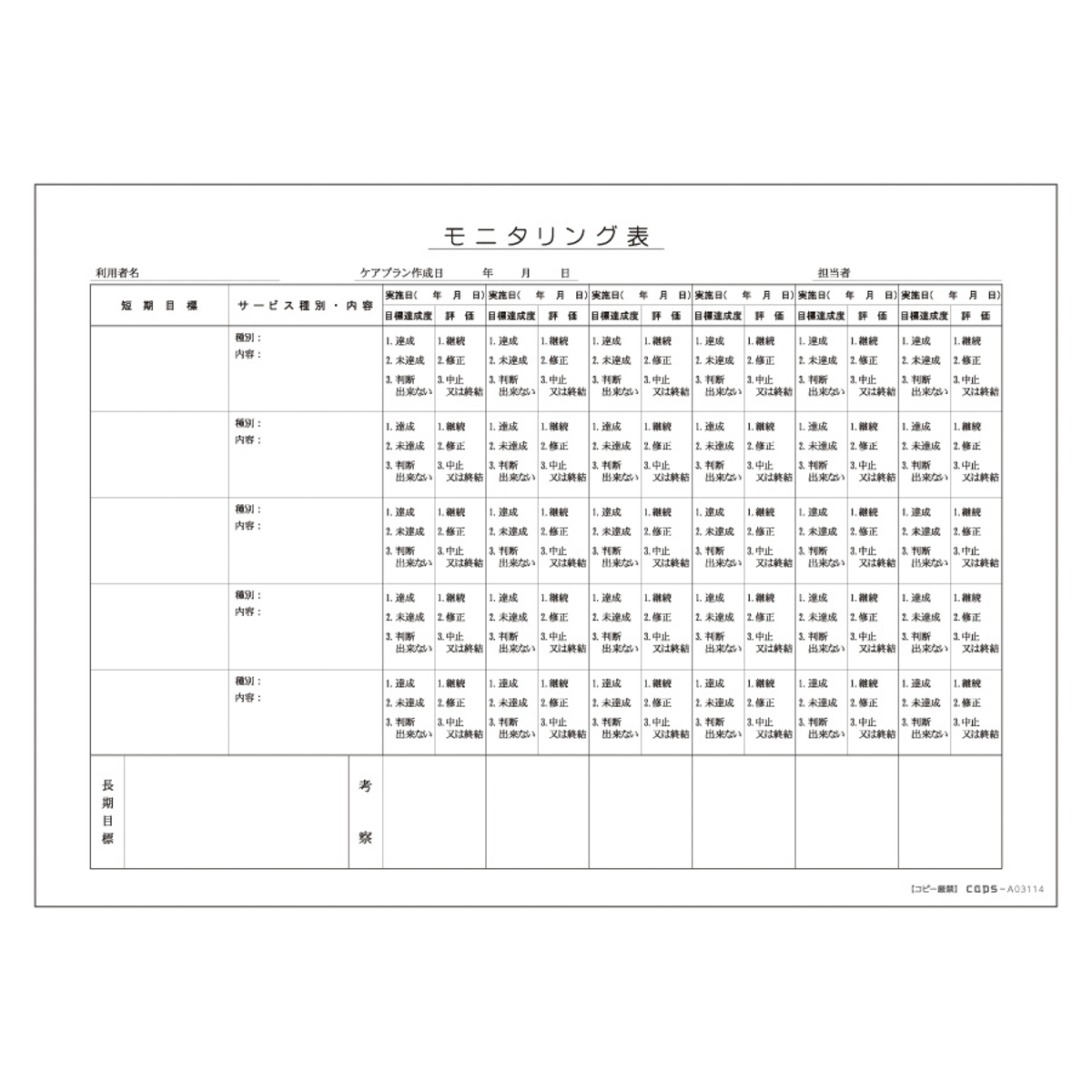 モニタリング表(目標管理型)